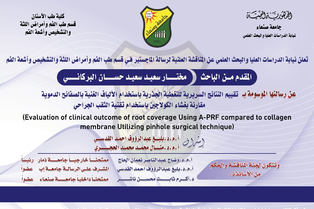 كلية طب الأسنان بجامعة صنعاء كجزء من متطلبات نيل درجة الماجستير.