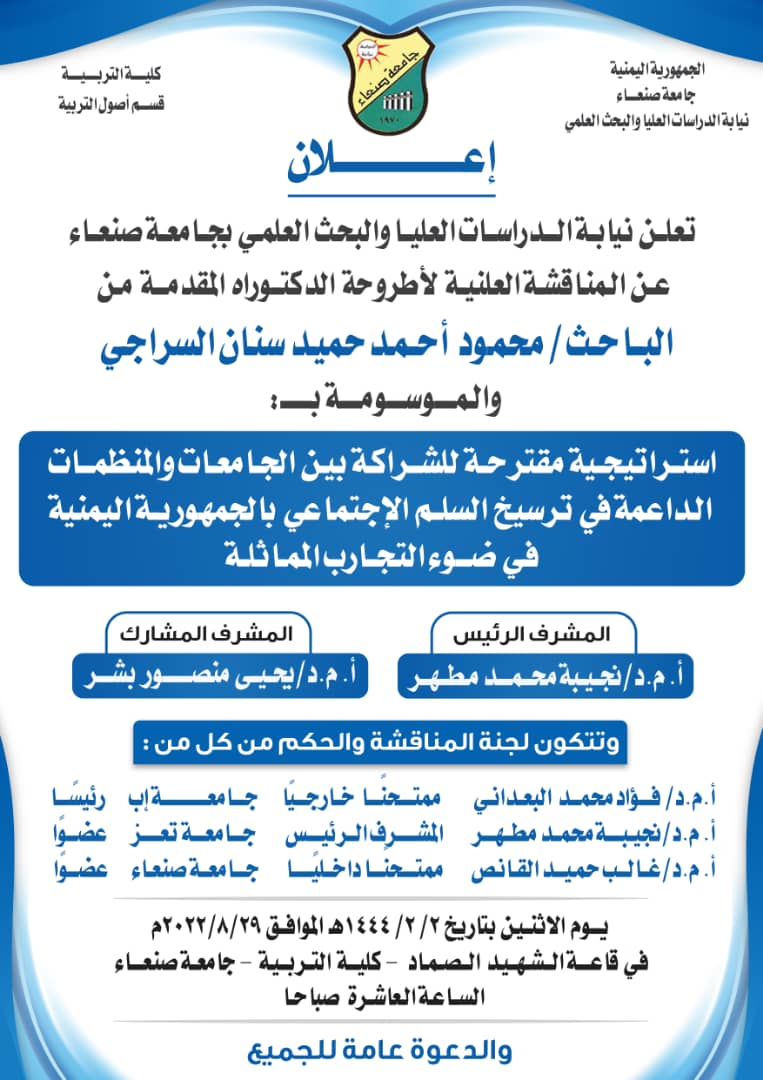 Discover more from جامعة صنعاء – جامعة اليمن الأُولى- Sana'a University