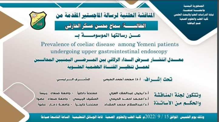 معدل انتشار مرض الداء الزلاقي بين المرضى اليمنيين المحالين لعمل تنظير القناة الهضمية العلوية
