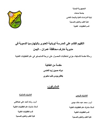 التقييم القائم على المدرسة لوبائية العدوى بالبلهارسيا الدموية في مديرية خارف محافظة عمران – اليمن