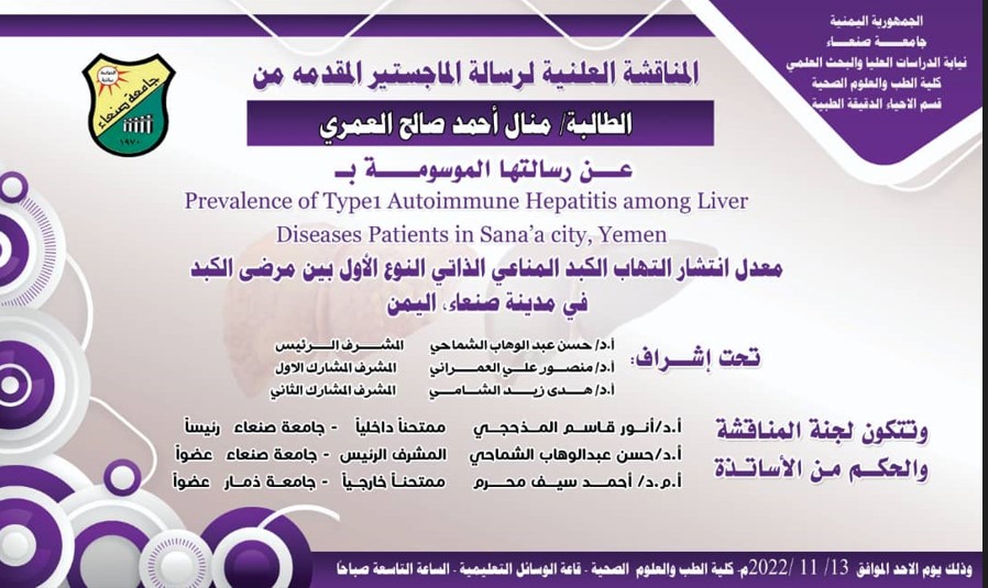 معدل انتشار التهاب الكبد المناعي الذاتي النوع الاول بين مرضى الكبد في مدينة صنعاء – اليمن
