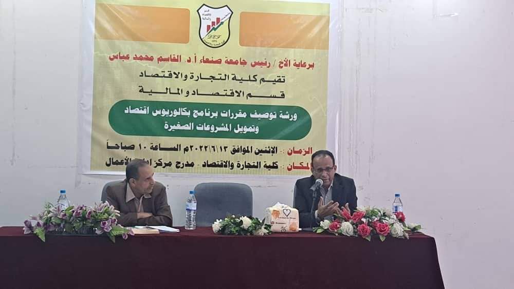 نظمت كلية التجارة والاقتصاد مؤخرا، ورشة لمناقشة توصيف مقررات برنامج اقتصاد و تمويل المشروعات الصغيرة بمشاركة اساتذة قسم الاقتصاد والمالية ومركز التطوير الاكاديمي بالجامعة وممثلين عن سوق أ فرادا ومؤسسات