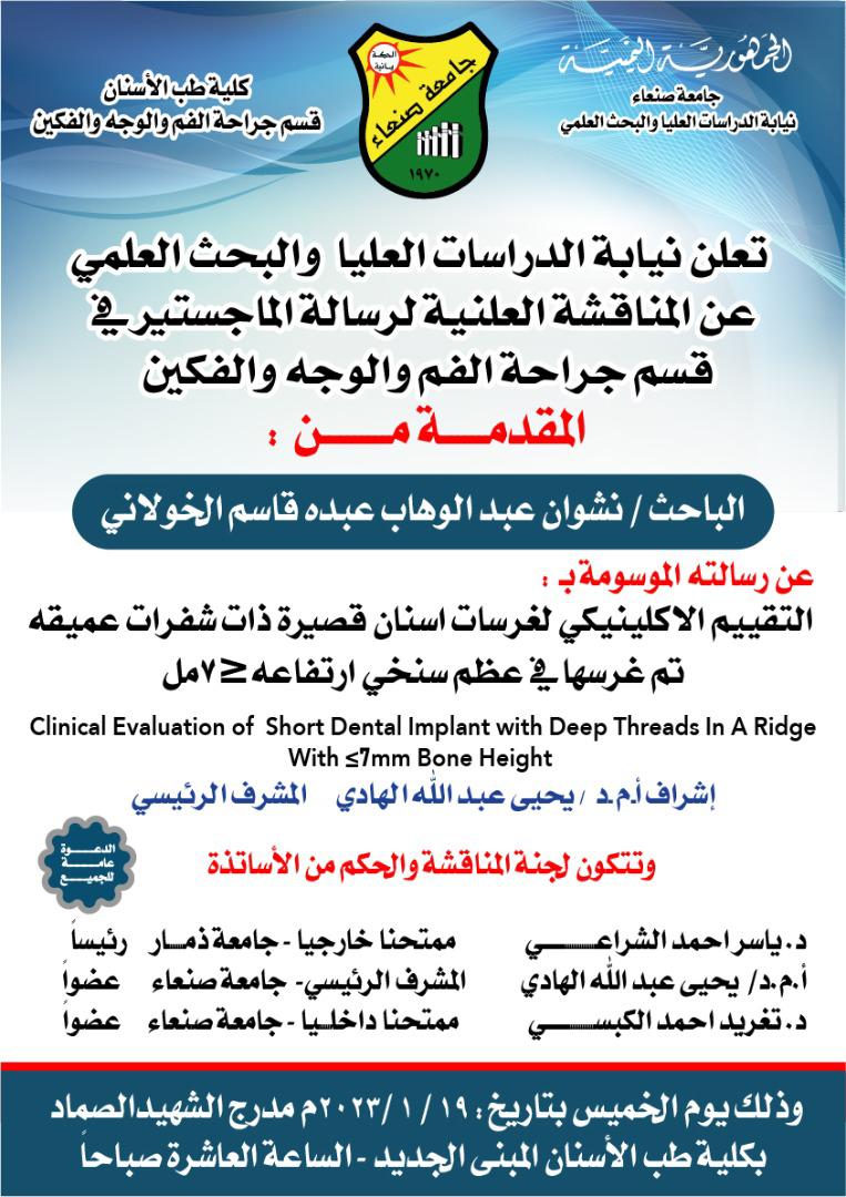 التقييم الاكلينيكي لغرسات اسنان قصيرة ذات شفرات عميقة تم غرسها في عظم سنخي ارتفاعه <= 7 مل