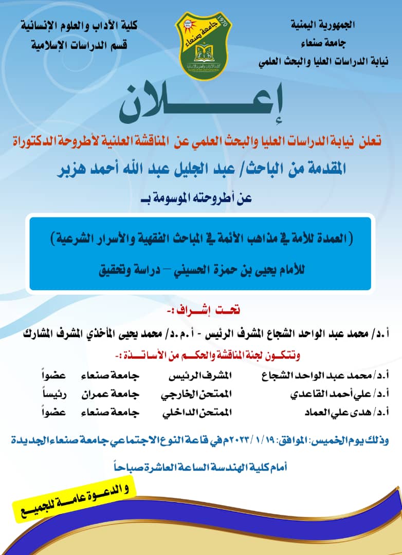 بحث علمي مقدم لإستكمال متطلبات الحصول على درجة الدكتوراه كلية الأداب واعلوم الانسانية ، جامعة صنعاء