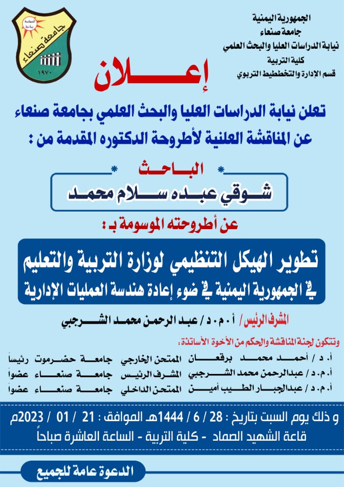 Discover more from جامعة صنعاء – جامعة اليمن الأُولى- Sana'a University