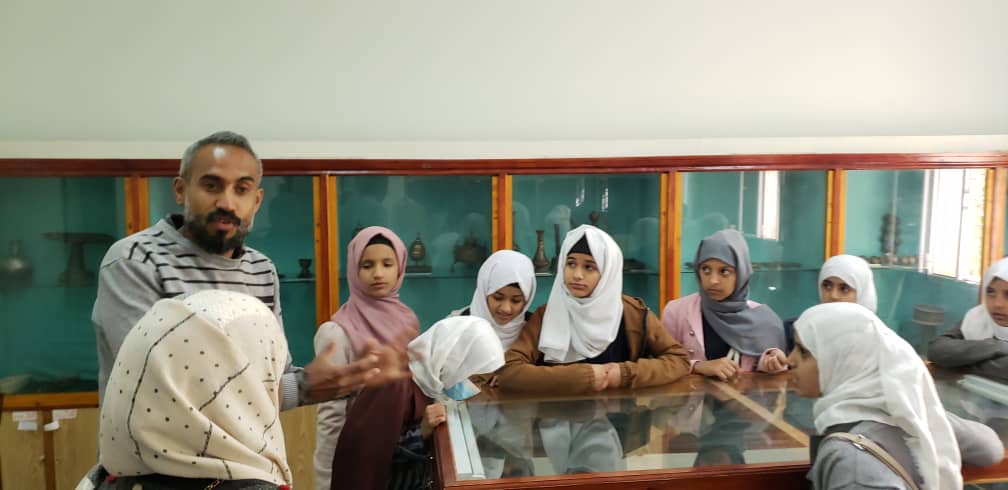 شرحا مفصلا للطلبة والزوار حول محتويات المتحف وتاريخ هذه المأثر التي تعبر عن حيوية وجذور الحضارة اليمنية العريقة.