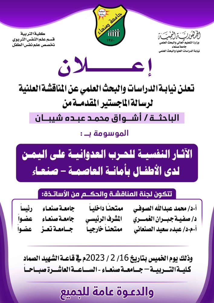 اكتشاف المزيد من جامعة صنعاء – جامعة اليمن الأُولى- Sana'a University