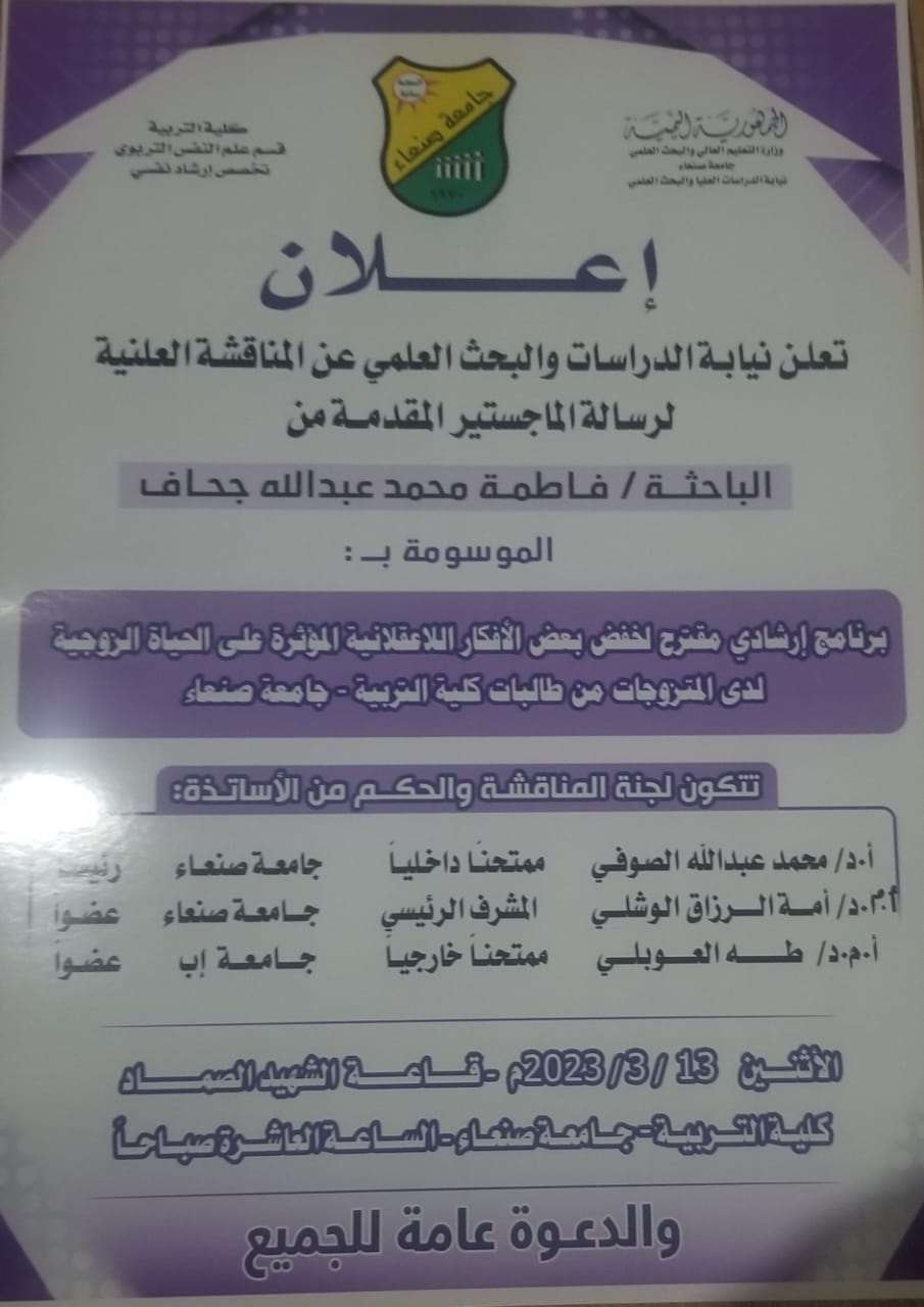 تخصص ارشاد نفسي- كليه التربيه-جامعة صنعاء