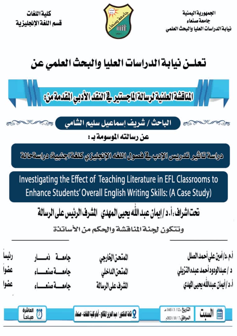 دراسة تأثير تدريس الإدب في فصول اللغة الإنجليزية كلغة اجنبية:دراسة حالة