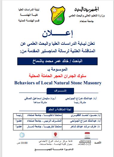 تعلن نيابة الدراسات العليا والبحث العلمي عن المناقشة العلنية لرسالة الماجستير المقدمة من :