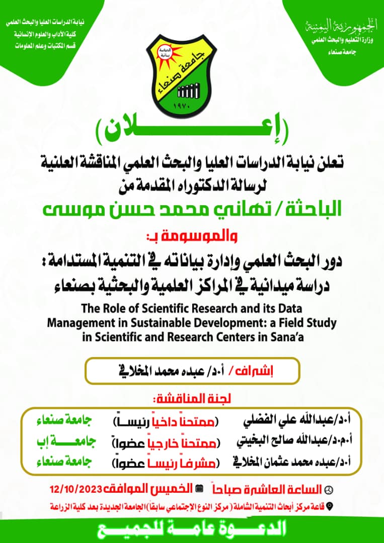 دور البحث العلمي وإدارة بياناته في التنمية المستدامة: دراسة ميدانية في المراكز العلمية والبحثية بصنعاء