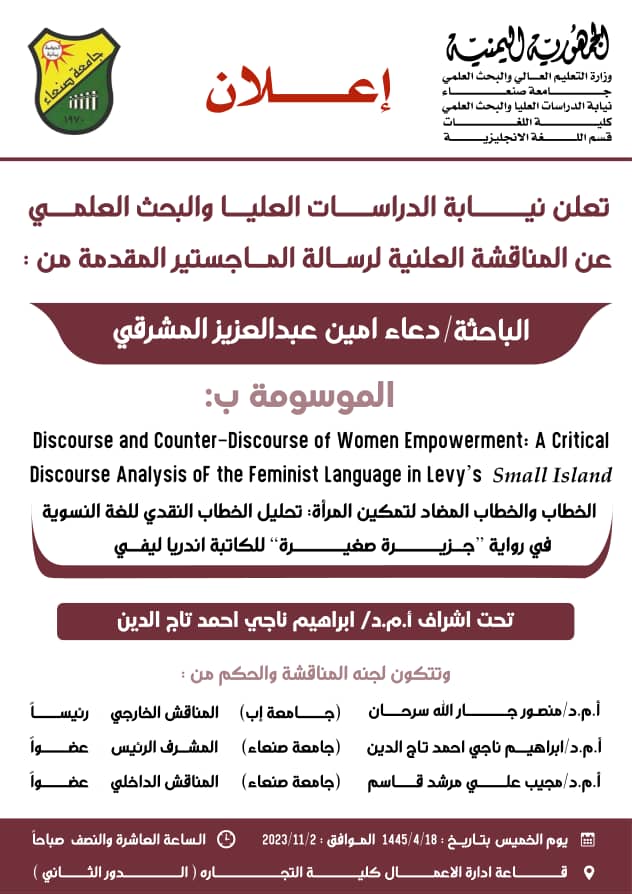 الخطاب والخطاب المضاد لتمكين المرأة:تحليل الخطاب النقدي للغة النسوية في رواية “جزيرة صغيرة” للكاتبة أندريا ليفي