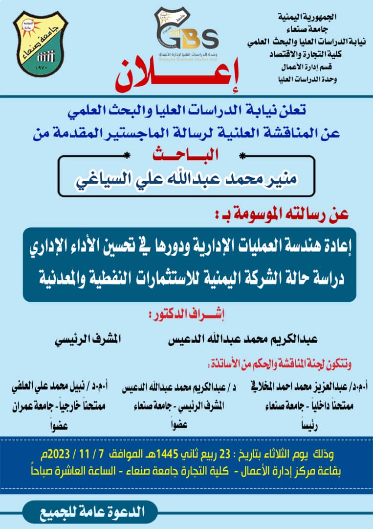 إعادة هندسة العمليات الإدارية ودورها في تحسين الأداء الإداري دراسة حالة الشركة اليمنية للاستثمارات النفطية والمعدنية