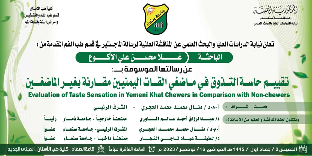 تقييم حاسة التذوق في ماضغي القات اليمنيين مقارنة بغير الماضغـين