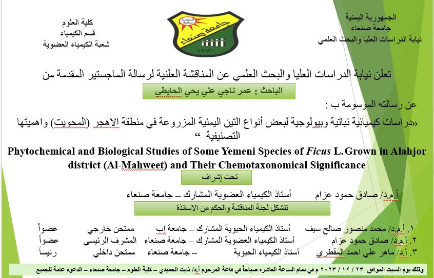 دراسات كيميائية نباتية وبيولوجية لبعض أنواع التين اليمنية المزروعة في منطقة الاهجر(المحويت)واهميتها التصنيفية