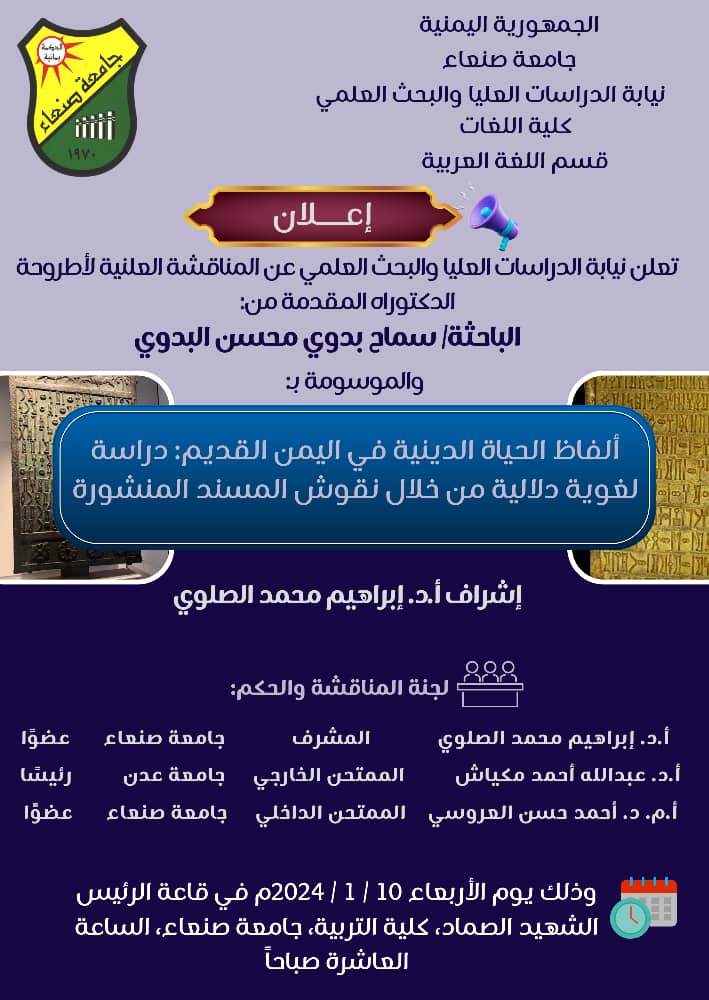 ألفاظ الحياة الدينية في اليمن القديم:دراسة لغوية دلالية من خلال نقوش المُسند المنشورة