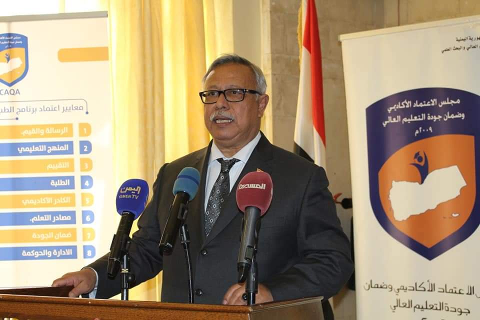 شارك رئيس حكومة تصريف الأعمال الدكتور عبد العزيز صالح بن حبتور، في فعالية إشهار الاعتماد الأكاديمي البرامجي الوطني لبرنامج الطب والجراحة في جامعة صنعاء، نظمها اليوم مجلس الاعتماد الأكاديمي وضمان جودة التعليم العالي.