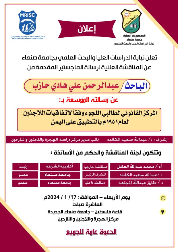 المركز القانوني لطالبي اللجوء وفقا لاتفاقيات اللاجئين لعام 1951م بالتطبيق علي اليمن