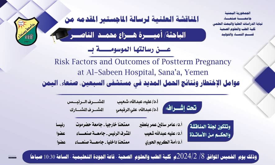عوامل الإختطار ونتائج الحمل المديد في مستشفى السبعين،صنعاء،اليمن