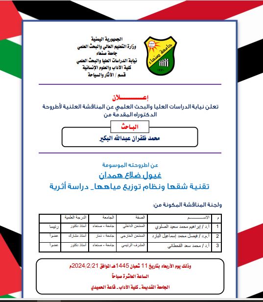 تعلن نيابة الدراسات العليا والبحث العلمي عن المناقشة العلنية لأطروحة الدكتوراه المقدمة من :