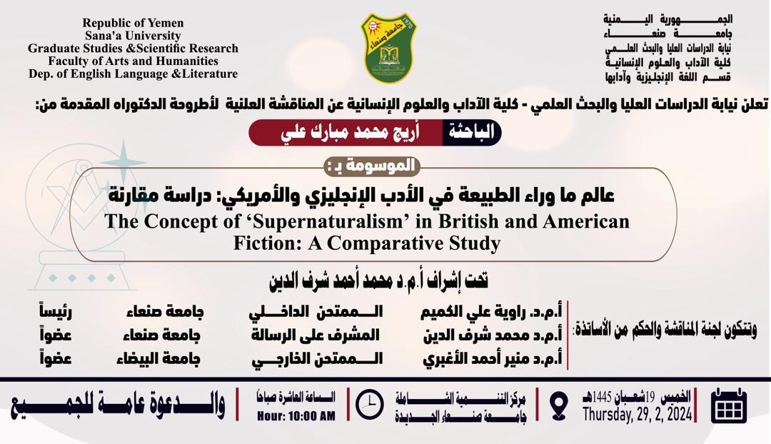بحث علمي مقدم للحصول على درجة الدكتوراه-كلية الآداب والعلوم الانسانية-الى قسم اللغة الإنجليزية وآدابها