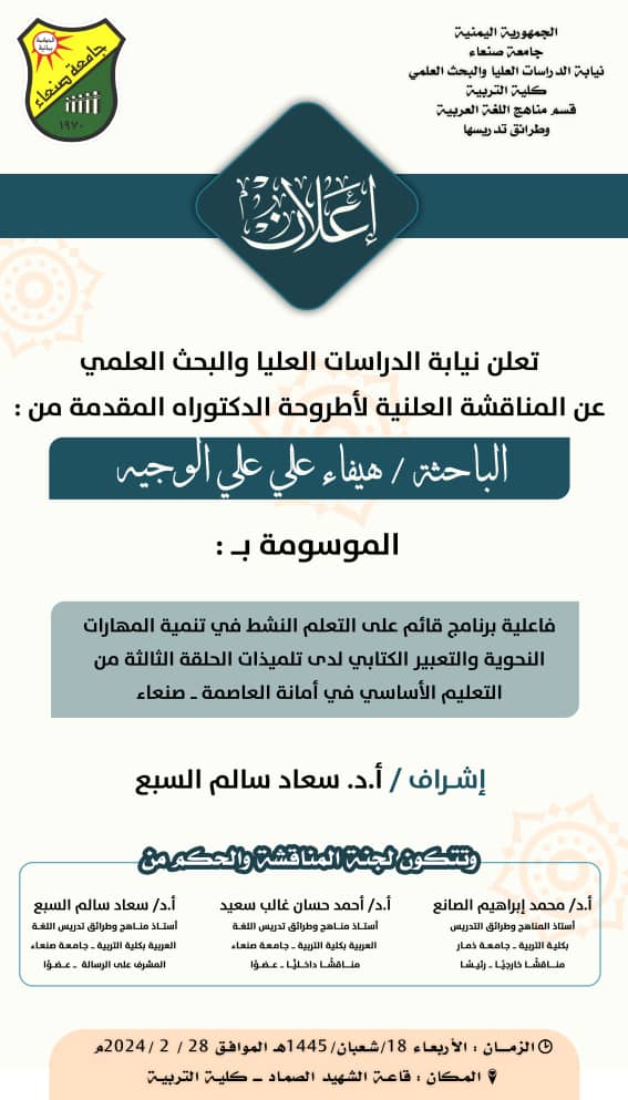 قسم مناهج اللغة العربية وطرائق تدريسها –كلية التربية – جامعة صنعاء
