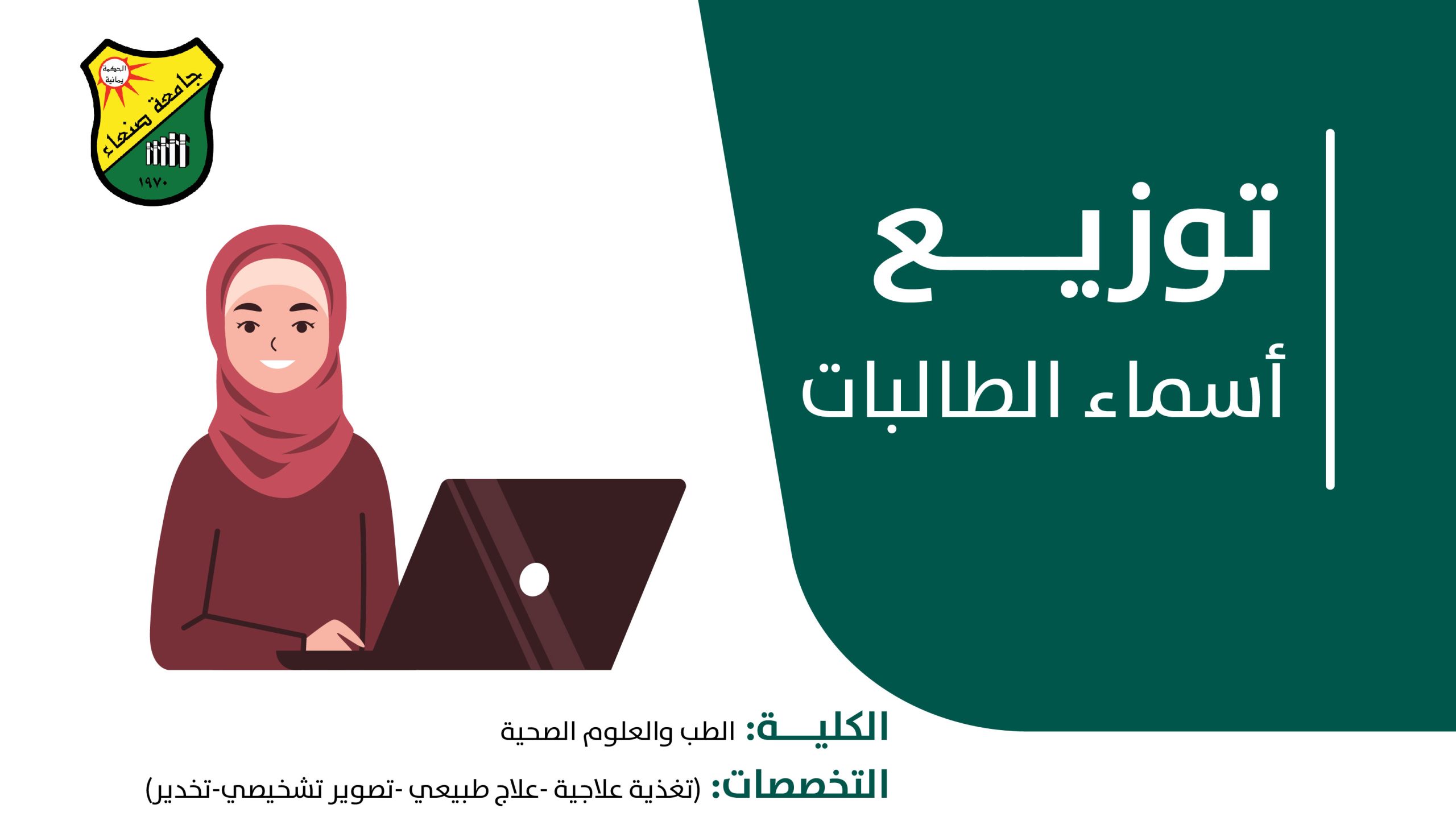 اسماء الطالبات المتقدمات لاختبارات المفاضلة في كلية الطب والعلوم الصحية- تخصصات العلوم الطبية- (تغذية علاجية -علاج طبيعي -تصوير تشخيصي-تخدير) وتخصصي المختبرات والتمريض وعددهن 728طالبة قُمن بالتنسيق وتسديد حوافظ التنسيق ويحق لهن دخول اختبارات القبول(نظام عام )للعام الجامعي 1446ه/2024/2025م.