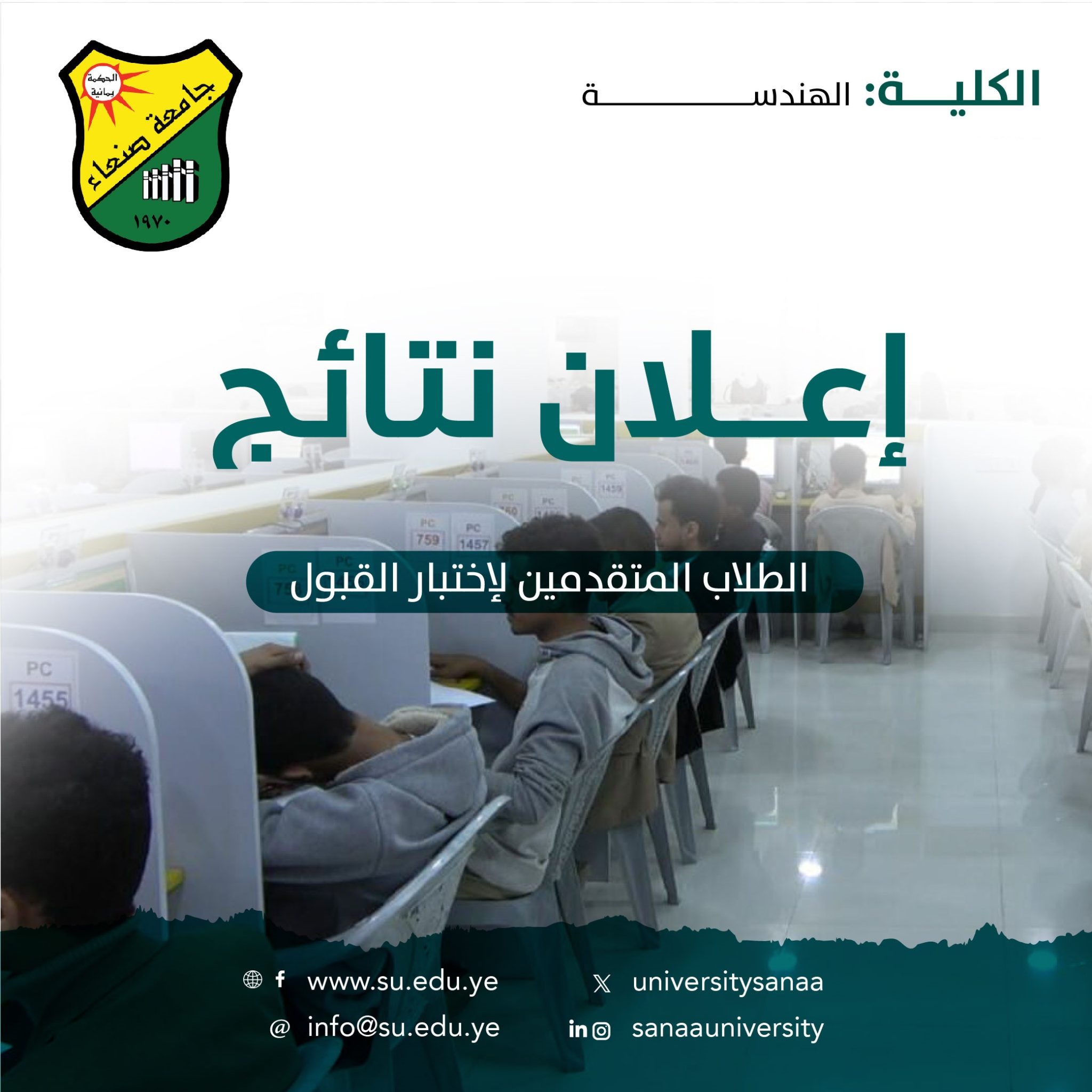 اعلان نتائج الطلاب والطالبات الذين تقدموا لاختبار المفاضلة اليوم في جامعة صنعاء كلية الهندسة