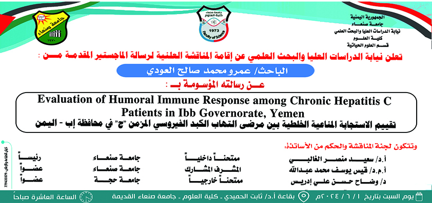 تقييم الاستجابة المناعية الخلطية بين مرضى التهاب الكبد الفيروسي المزمن النمط “ج” في محافظة اب – اليمن