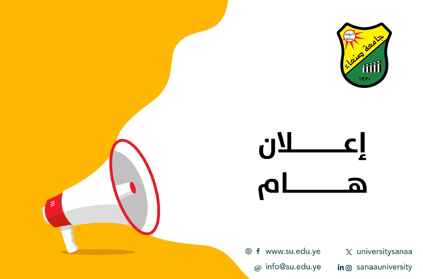 تعلن نيابة رئاسة جامعة صنعاء لشؤون الطلاب عن قبول جميع الطلاب والطالبات المسددين رسوم التنسيق بكلية التجارة والاقتصاد – النظام العام . وستبدا عملية القبول وصرف الملفات يوم الاحد الموافق 2 يونيو 2024 م وستستمر حتى يوم السبت الموافق 8 يونيو 2024م في مبنى كلية التجارة بالجامعة الجديدة .