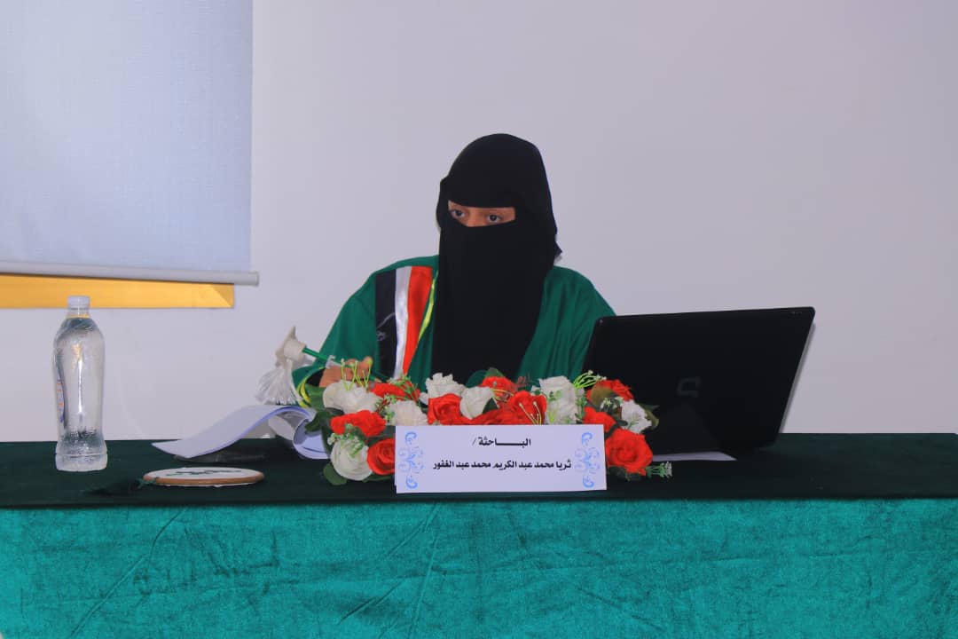 نالت الباحثة/ ثريا محمد عبد الكريم محمد عبد الغفور درجة الدكتوراه في الدراسات الإسلامية- تخصص عقيدة بدرجة امتياز 95% مع مرتبة الشرف الأولى من جامعة صنعاء عن أطروحتها الموسومة ب مؤازرة الإخوان وتطهير الجوارح من الأدران لأبي القاسم بن محمد بن حسين الشقيفي المتوفى (760 هجرية) من بداية المخطوط ( الإخلاص وما يتصل بذلك) إلى نهاية الباب السابع والعشرين ( في رفض الدنيا والزهد وما يتصل بذلك) (دراسة وتحقيق)