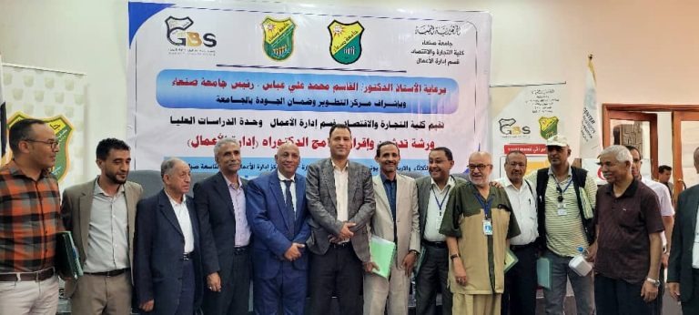 أقامت كُلْيَة التجارة والاقتصاد بجامعة صنعاء، صباح اليوم الثلاثاء 4/6/2024، ورشة تدشين وإقرار برنامَج الدكتوراه (إدارة الأعمال) التابع لقسم إدارة الأعمال -وحدة الدراسات العليا، برعاية رئيس الجامعة الأستاذ الدكتور القاسم محمد عباس، وحضور عميد الكُلِّيَّة الدكتور هاني المغلس، ونواب العميد، ورئيس قسم إدارة الأعمال الدكتور عبدالعزيز المخلافي، ورئيس مركز التطوير وضمان الجودة بالجامعة الدكتورة هدى علي العماد، كما حضر الورشة رؤساء الأقسام العلمية بالكلية وعدد من أساتذة الكُلِّيَّة والباحثين والأستاذ عادل الحبابي مساعد رئيس الجامعة للشؤون الإعلامية.