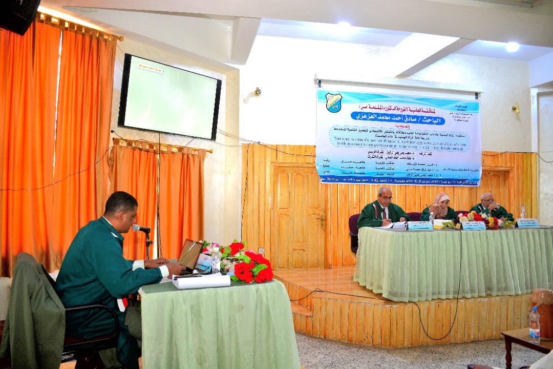 ** صنعاء، اليمن -** حصل الباحث صادق أحمد محمد العزعزي على درجة الدكتوراه في التنمية الدولية والنوع الاجتماعي من جامعة صنعاء [مركز أبحاث ودراسات التنمية الدولية والنوع الاجتماعي] عن أطروحته بعنوان “استخدام المرأة اليمنية لخدمات التكنولوجيا المالية وعلاقته بالتمكين الاقتصادي لتحقيق التنمية المستدامة .
