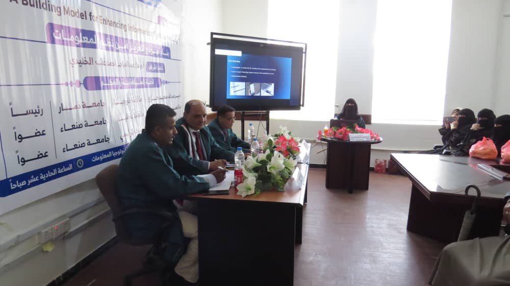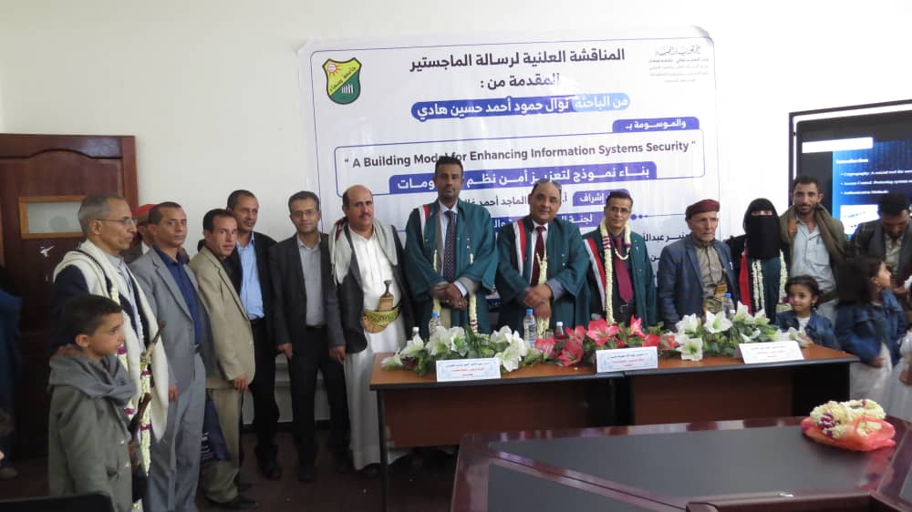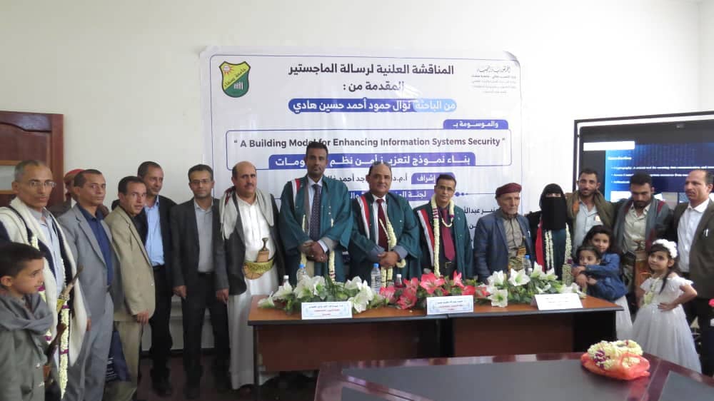 نالت الباحثة / نوال حمود أحمد حسين هادي درجة الماجستير في علوم الحاسوب تخصص علوم حاسوب بدرجة امتياز ٩٥% من جامعة صنعاء -كلية الحاسوب وتكنولوجيا المعلومات عن رسالتها الموسومة بعنوان : Building A Model for Enhancing Information System Security “، بناء نموذج لتعزيز أمن نظم المعلومات .تكونت لجنة المناقشة والحكم من الأساتذة التالية أسمائهم: