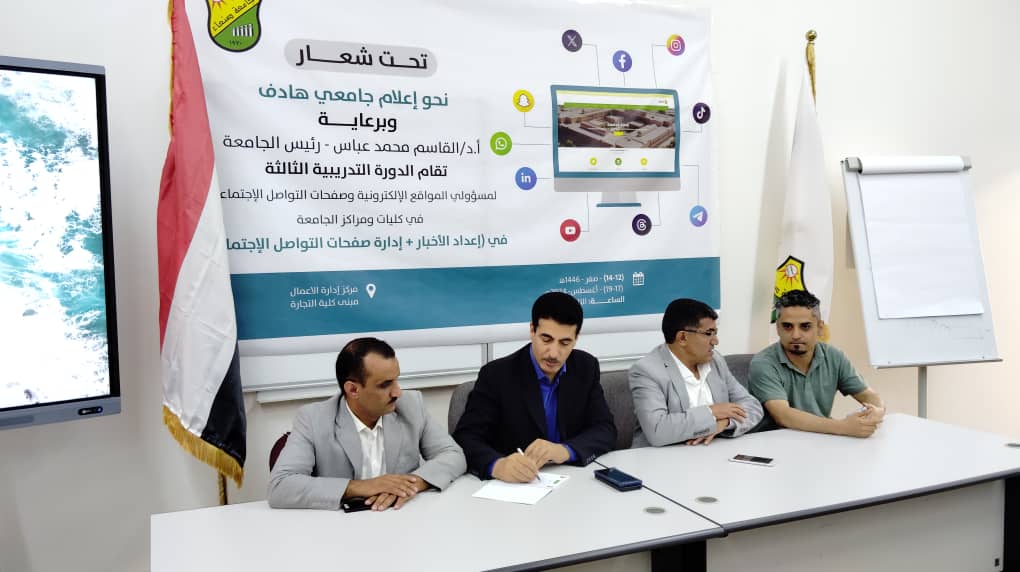 افتتاح الدورة التدريبية الثالثة لمسؤولي المواقع الإلكترونية وصفحات التواصل بجامعة صنعاء