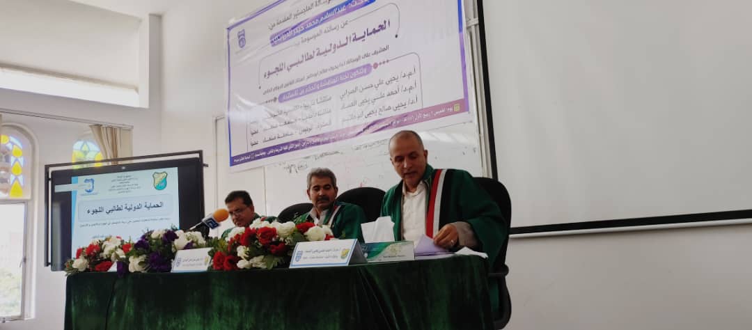 نال الطالب/ عبدالسلام محمد حيدر الدروبي، الماجستير بدرجة (95%) وتقدير إمتياز من مركز دارسات الهجرة واللاجئين والنازحين بجامعة صنعاء عن رسالته الموسومة بــــــ(الحماية الدوليةلطالبي اللجوء)