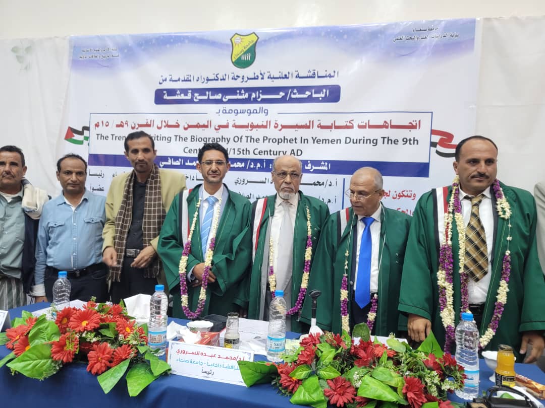 نال الباحث حزام مثنى صالح قعشة درجة الدكتوراه في قسم (التاريخ والعلاقات الدولية) تخصص (تاريخ إسلامي) كلية (الآداب والعلوم الإنسانيّة) بجامعة صنعاء، عن أطروحتة الموسومة بـ”اتجاهات كتابة السيرة النبوية في اليمن خلال القرن 9هـ/15م”، اليوم الأربعاء السادس من ربيع الثاني 1446هـ الموافق 9 أكتوبر 2024م.