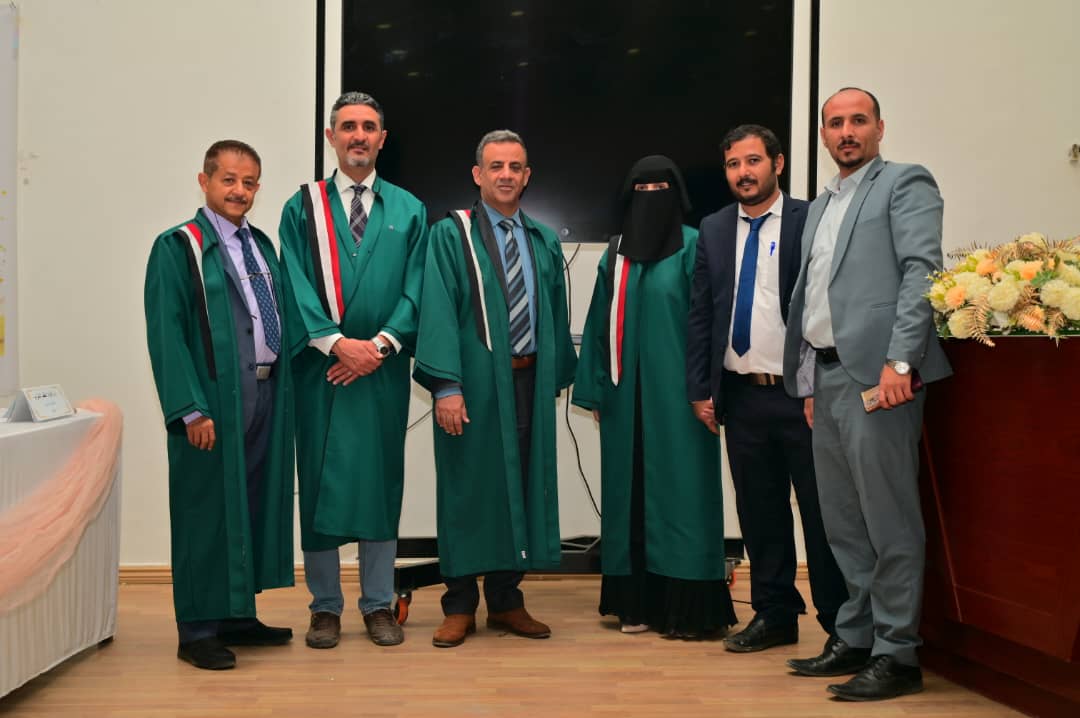 وتكونت لجنة المناقشة والحكم من الأستاذ الدكتور (فؤاد لطف المترب) مشرفا رئيسا وعضوا للجنة والأستاذ الدكتور (رامي عبدالرحمن إسحاق) مناقشا داخليا وعضوا للجنة والأستاذ المشارك الدكتور (عبدالحق حسين الحسني) مناقشا خارجيا رئيسا للجنة .