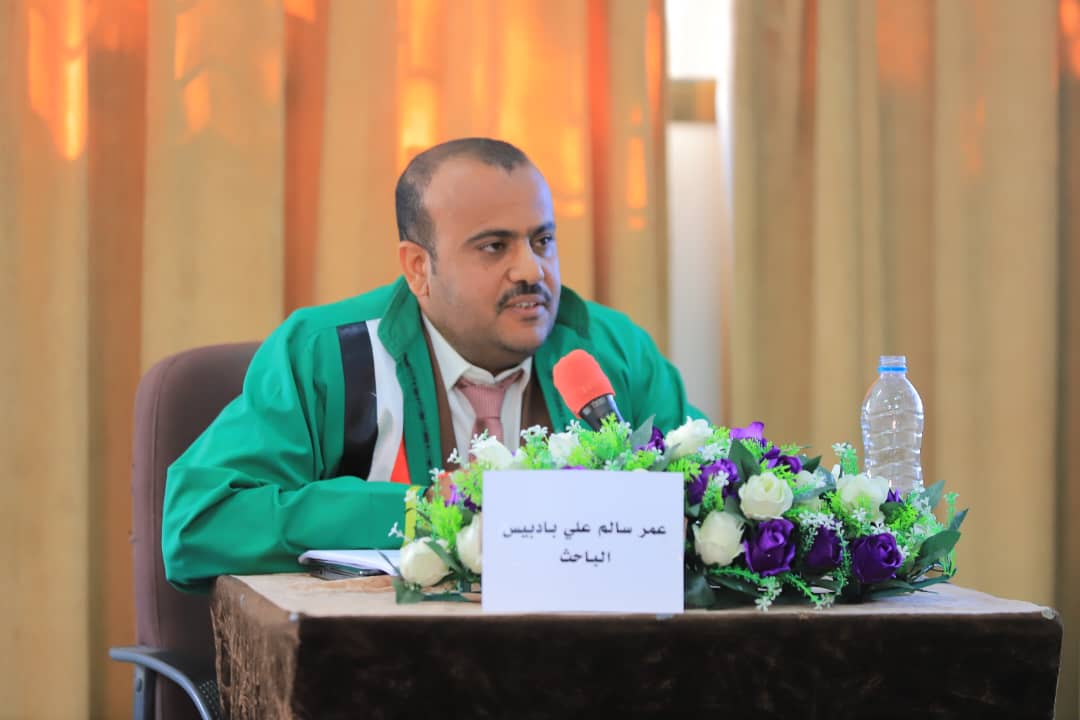 نال الباحث/ عمر سالم علي بادبيس درجة الدكتوراه في قسم (اللغة الإنجليزية وآدابها) تخصص (أدب إنجليزي) من كلية (الآداب والعلوم الإنسانية) بجامعة صنعاء عن أطروحتة الموسومة بــــــ(The Portrayal of Arabs and Muslims in Selected Novels of Fadia Faqir: A Self-Orientalist Approach) (تصوير العرب والمسلمين في روايات مختارة للكاتبة فادية فقير: مقاربة من منظور الاستشراق الذاتي)