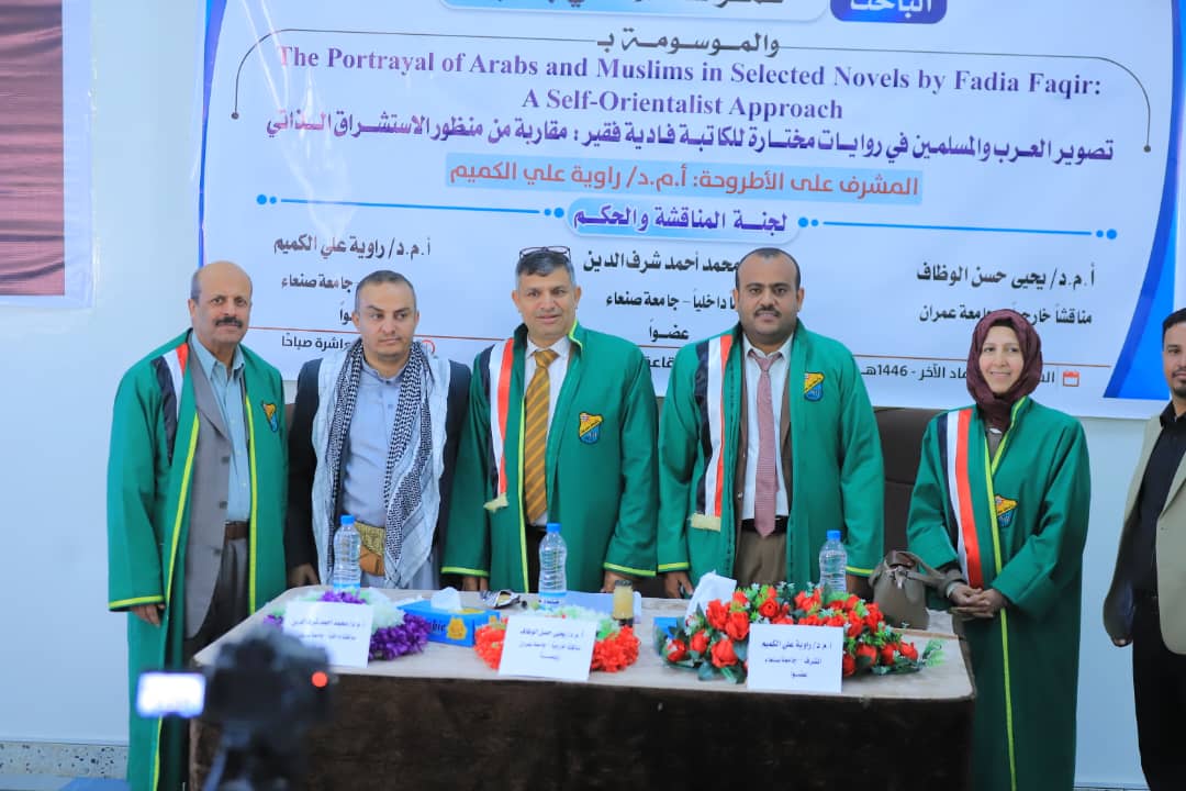 نال الباحث/ عمر سالم علي بادبيس درجة الدكتوراه في قسم (اللغة الإنجليزية وآدابها) تخصص (أدب إنجليزي) من كلية (الآداب والعلوم الإنسانية) بجامعة صنعاء عن أطروحتة الموسومة بــــــ(The Portrayal of Arabs and Muslims in Selected Novels of Fadia Faqir: A Self-Orientalist Approach) (تصوير العرب والمسلمين في روايات مختارة للكاتبة فادية فقير: مقاربة من منظور الاستشراق الذاتي)