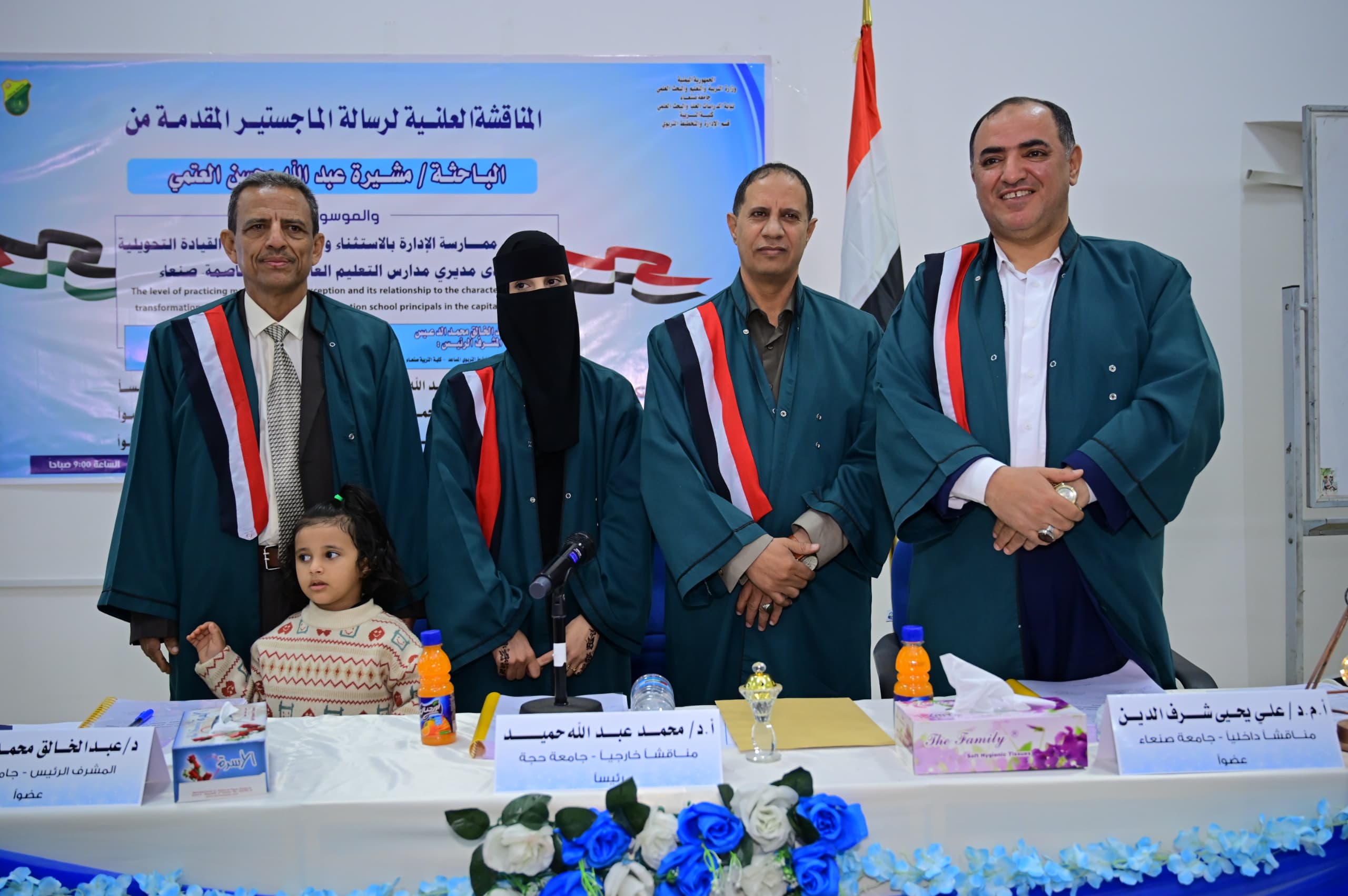 نالت الباحثة مشيرة عبدالله محسن العتمي درجة الماجستير في الإدارة والتخطيط من كلية التربية بجامعة صنعاء يوم السبت 4/ رجب 1446 هجرية الموافق 4 / 1 /2025م عن رسالتها الموسومة بـ “مستوى ممارسة الإدارة بالاستثناء وعلاقته بسمات القيادة التحويلية لدى مديري مدارس التعليم العام بأمانةالعاصمة صنعاء”.