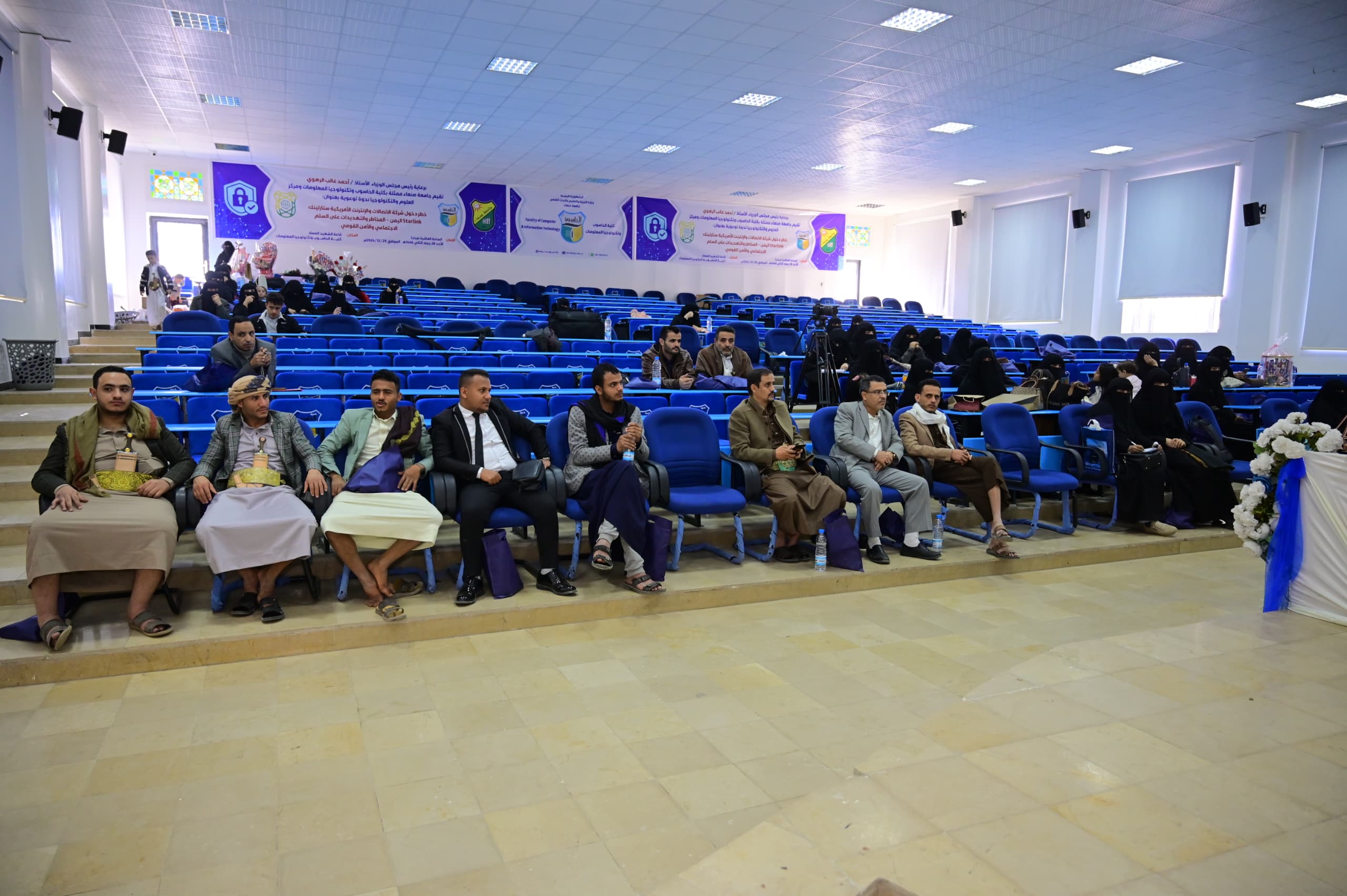حضر المناقشة عدد من طلاب الدراسات العليا وأسرة الباحثة وموظفي الكلية