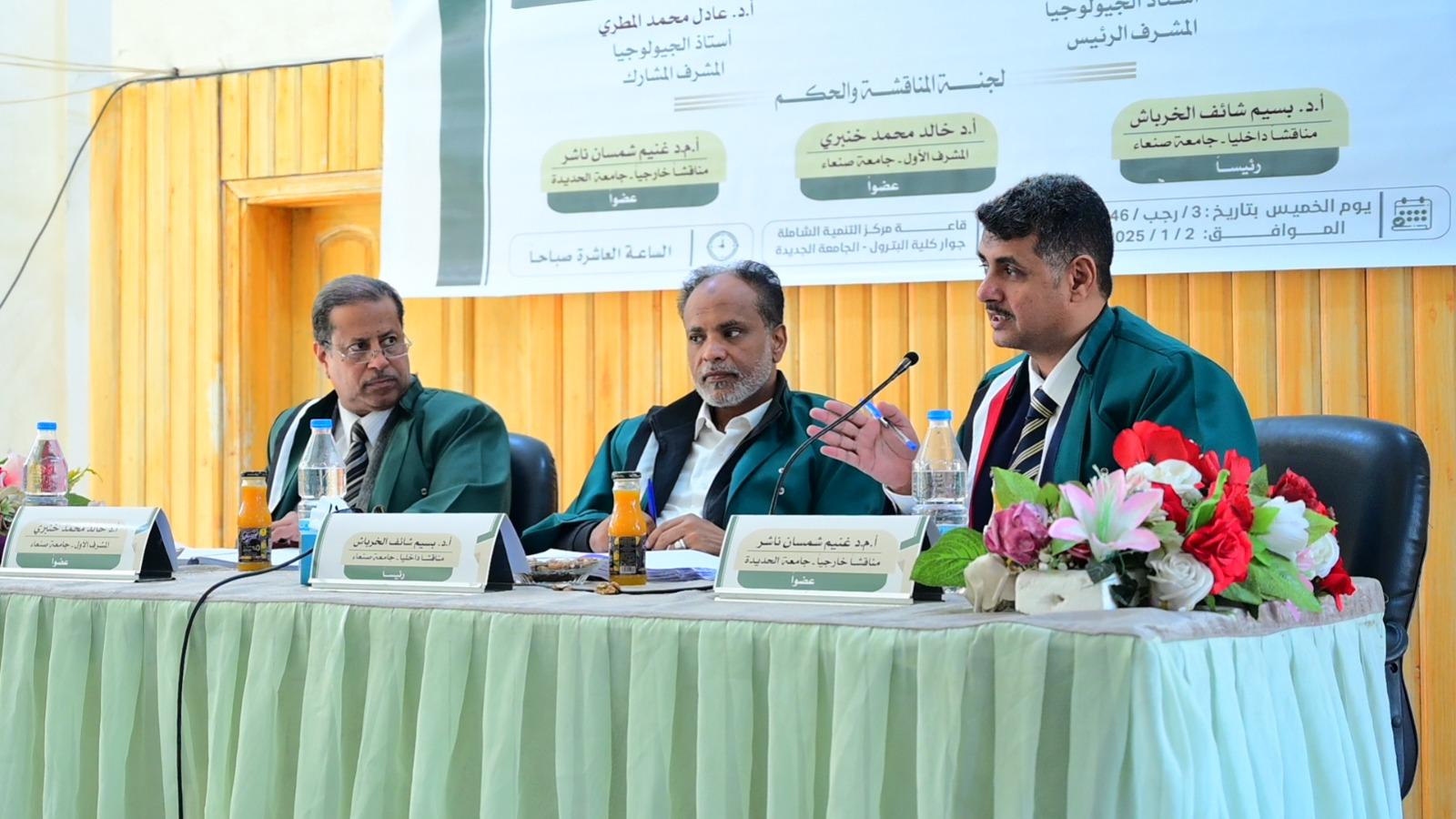 نالت الباحثة حفيظة احمدعبيدالمطري درجة الدكتوراه في قسم (علوم الأرض) تخصص (هيدروجيولوجي) من كلية (البترول والموارد الطبيعية) بجامعة صنعاء عن اطروحتها الموسومة بــــــ(هشاشة مصادر المياه لتغير المناخ وإجراءات التكيف في وادي بنا- اليمن) يوم الخميس 2/ 7 /1446 الموافق 2/1/2025م.