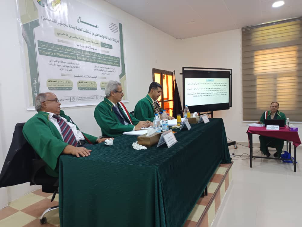 نال باحث الماجستير / معمر علي محمد علي ناجي درجة الماجستير بتقدير ممتاز وبنسبة 95% في قسم (علوم البيئة) تخصص (نوعية المياه) كلية (البترول والموارد الطبيعية) بجامعة صنعاء عن رسالته الموسومة بــــــ(تأثيرات المياه العادمة على نوعية المياه الجوفية في مديرية الظهار مدينة إب – اليمن يوم الاربعاء 2/ 7 /1446ه الموافق 1/1/2025م .