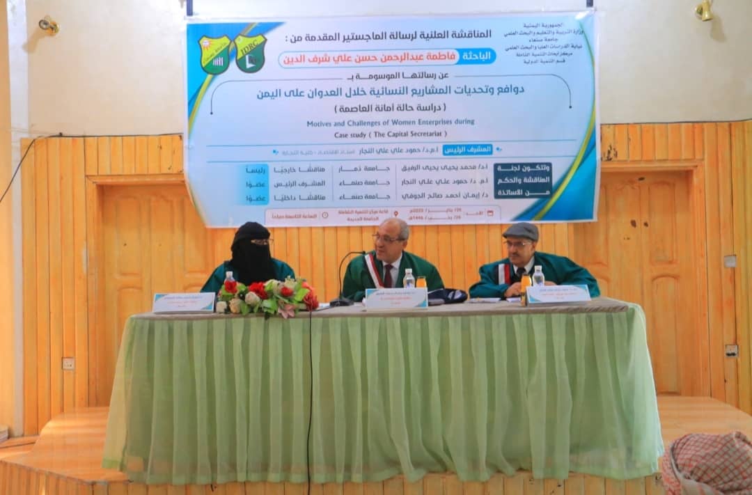 وقد هدفت الرسالة إلى التعرف على الدوافع التي تدعم المرأة لبدء مشاريعها الجديدة خلال الحرب في اليمن والتحديات التي واجهتها المرأة أثناء تأسيس المشاريع.