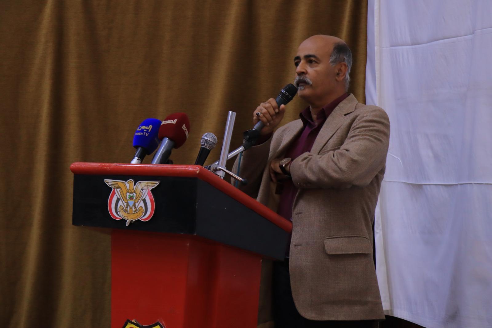 بدوره ألقى عميد كلية التربية الدكتور سعد إبراهيم العلوي كلمة أكد في مستهلها أن إقامة الفعالية يعكس مدى اهتمام الجامعة بالانشطة الرياضية والثقافية التي تعد رديف اساسي للمنهج الدراسي،وهذا التوجه يسير في الاتجاه الذي رسمه مشروع يد تبني ويد تحمي وصار نهجا إختطه الجميع حتى الآن.