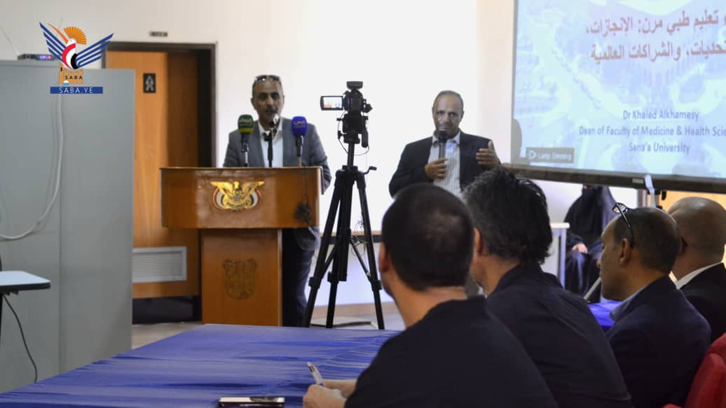 وفي الندوة أشار عميد كلية الطب والعلوم الصحية الدكتور خالد الخميسي إلى أن الندوة تسلط الضوء على حجم الأضرار التي تعرض لها القطاع الطبي جراء الح ر ب والحصار على اليمن وما خلفه من معاناة على المرضى.