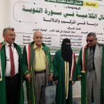 نالت الباحثة حنان خالد محمد يعيش درجة الماجستير بدرجة 95 %وبتقدير ممتاز مع التوصية بالطباعة وتداول الرسالة في الجامعات، من قسم اللغة العربية وآدابها تخصص لسانيات من كلية الآداب والعلوم الإنسانية بجامعة صنعاء، عن رسالتها الموسومة بـ”الأفعال الكلامية في سورة التوبة – دراسة في التركيب والدلالة”.وذلك يوم الثلاثاء 26 شعبان عام 1446هـ الموافق 25 فبراير 2025م.