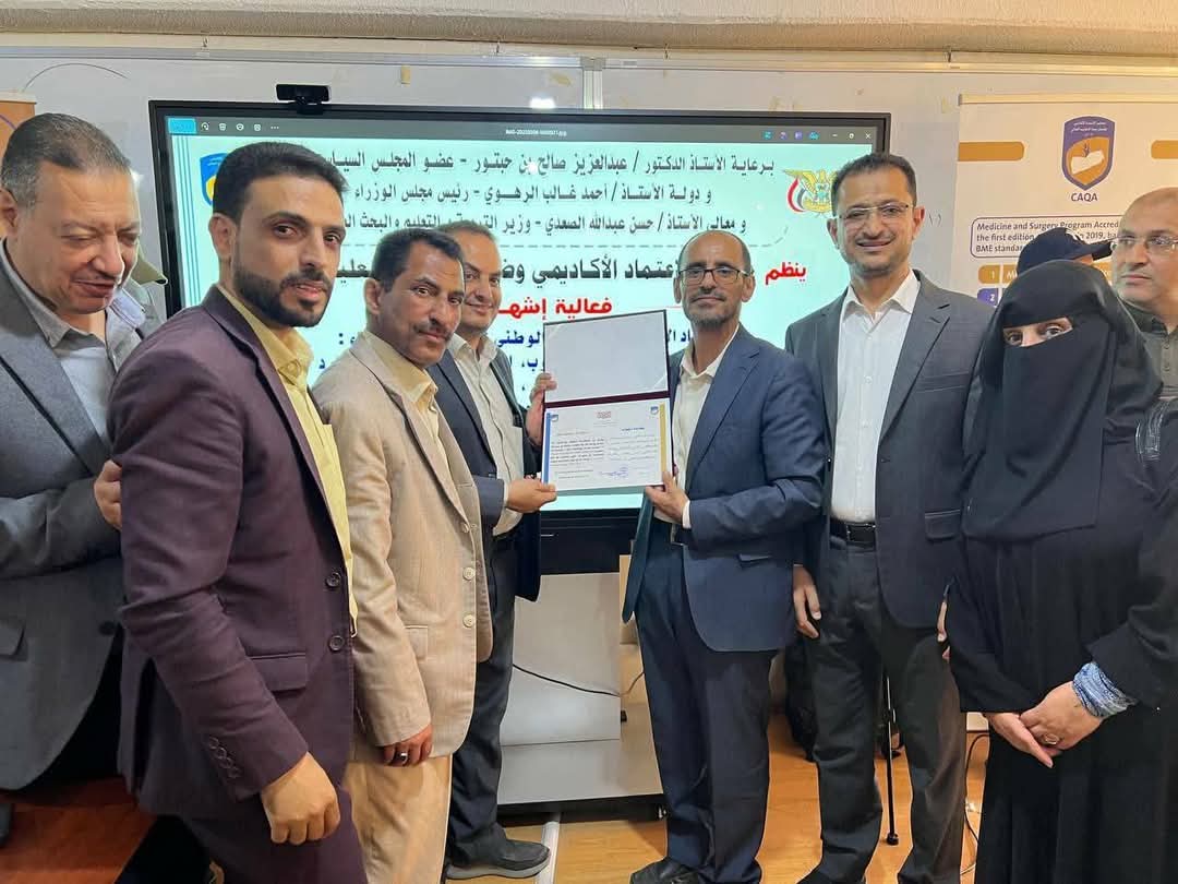 وأضاف: “لا غرابة أن نجتمع اليوم ونحتفي بهذا الإنجاز الذي حققت جامعة صنعاء على المستويين الوطني والإقليمي بحصولها على الاعتماد الأكاديمي المؤسسي الكامل لعدد من البرامج الأكاديمية في الجامعة”.