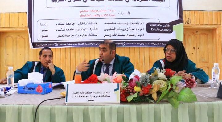 نال الباحث مختار عبد الله ناجي مسعد درجة الماجستير بدرجة 95% بتقدير ممتاز في قسم اللغة العربية – تخصص أدب ونقد – كلية اللغات بجامعة صنعاء عن رسالته الموسومة بـ: (البنية السردية في مشاهد القيامة في القرآن الكريم)